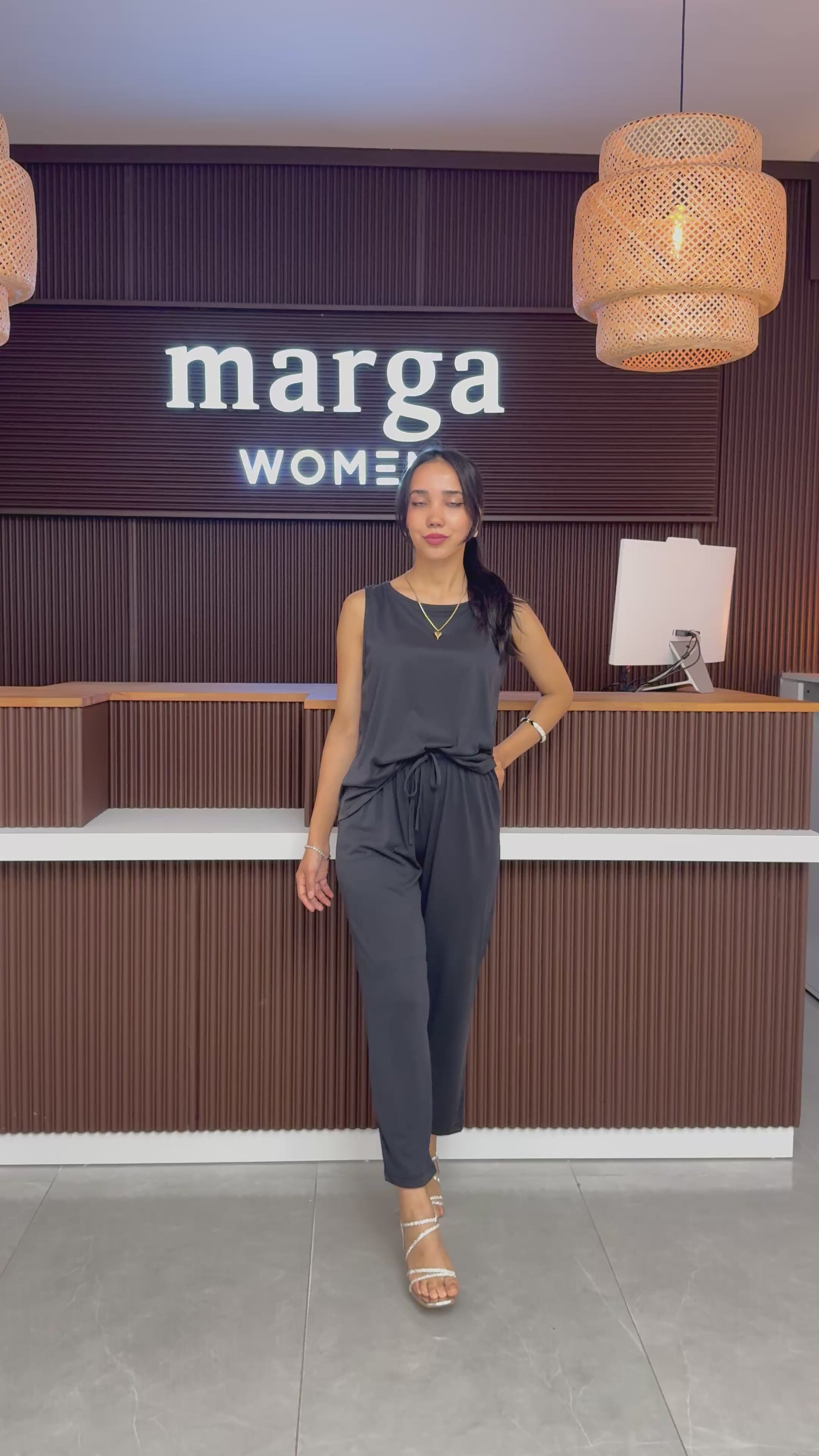 Siyah kolsuz bluz ve beli lastikli geniş paça pantolon takımı. Modal dokuma kumaştan. Yuvarlak yaka. Düz kesim pantolon bilekte bitiyor.